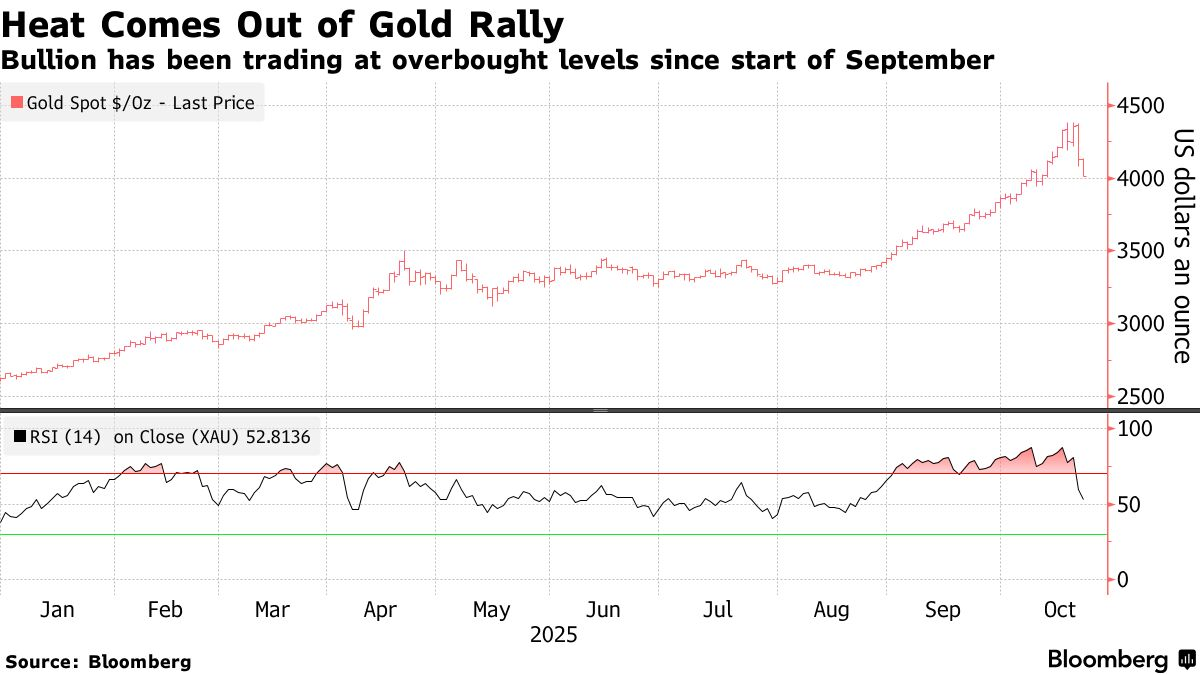 從交易層面來看,此次回調直接終結了自8月中旬開啟的快速上行周期。近幾個月推動金價走高的核心邏輯包括兩方面:一是“貶值交易”策略的盛行——即投資者通過規避主權債務與法幣資產,對沖失控的預算赤字風險,二是市場對美聯儲年底前至少一次大幅降息的押注。即便經歷此次回調,黃金年內漲幅仍接近60%。