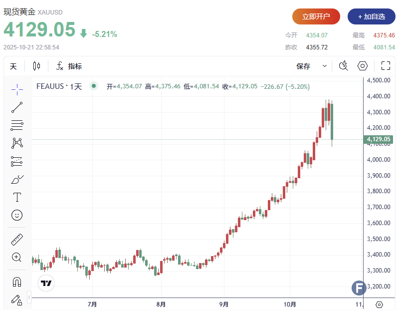 道瓊斯市場數據與FactSet的數據顯示,12月交割的黃金期貨收于4109.10美元,下跌5.7%,創下自2013年6月20日以來最大單日跌幅。